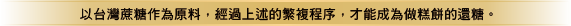 在製作糕餅的過程中,糖是最重要的核心與精隨,厚德堂使用的還糖要經過至少90天的醞釀,這種方式已鮮少人使用。